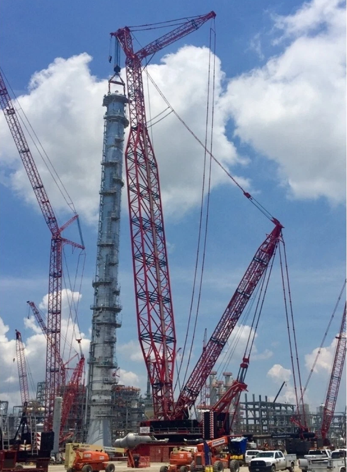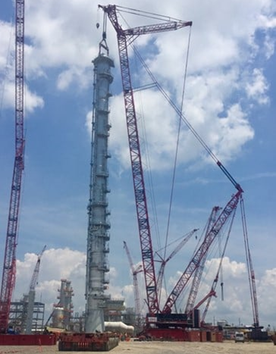 The Demag CC 8800-1 has a capacity of 1,600ton. A crawler crane is mounted on an undercarriage with a pair of caterpillar tracks that provide stability and mobility. Their configuration – such as boom length, backmast and counterweight - can be adjusted to specific requirements. This provides additional lifting capacity. Crawler cranes can crawl with a load, allowing more flexibility in lifting.